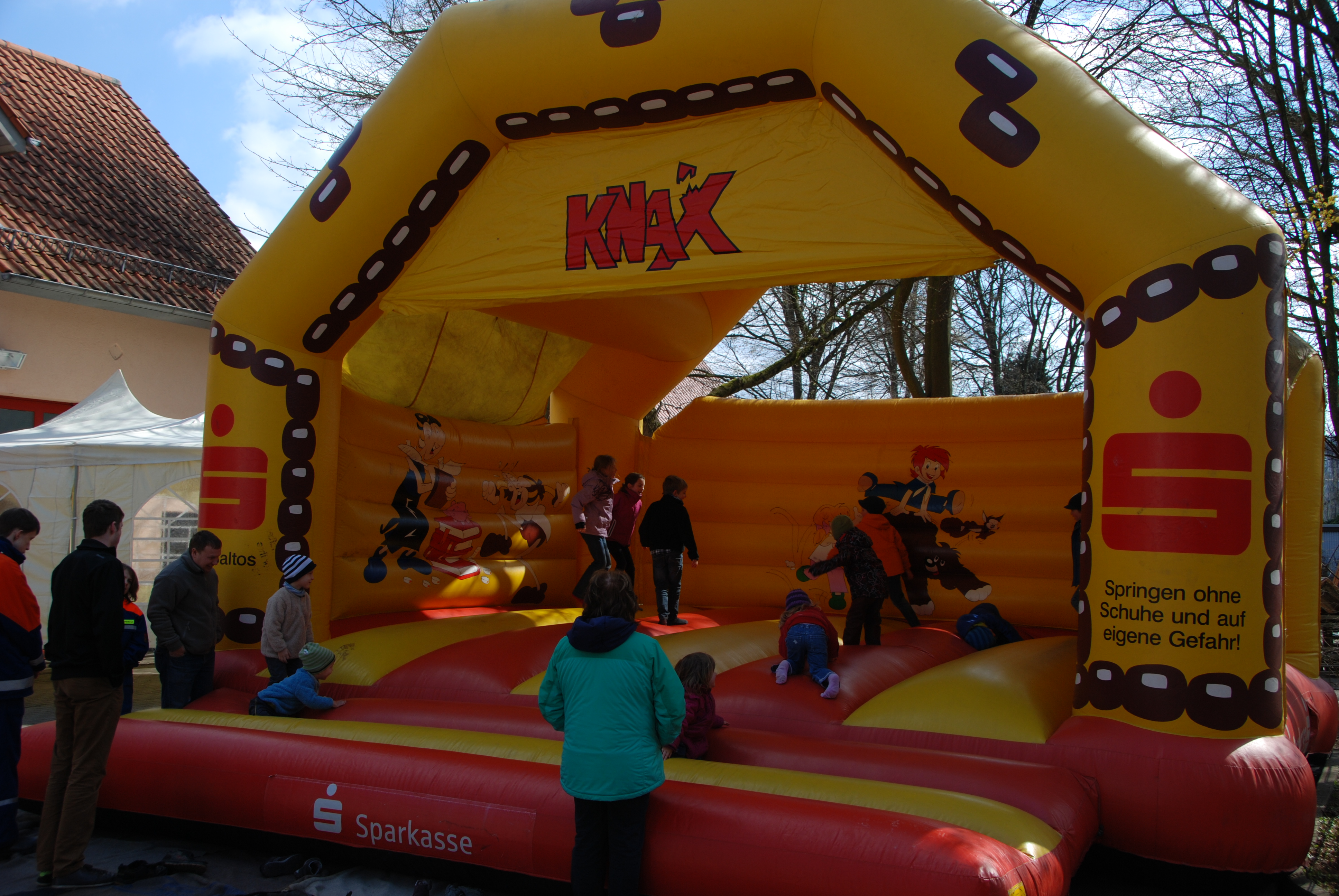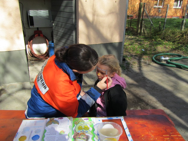 Damit der Tag der offenen Tür für Groß und Klein zu einem runden Erlebnistag bei der Feuerwehr wurde hatte die Feuerwehr natürlich auch ein leckeres Mittagessen sowie Kaffee und Kuchen vorbereitet sowie für die jüngeren Besucher extra eine Kinderschminkecke vorbereitet in der sich die Kinder nach Lust und Laune schminken konnten. Großer Beliebtheit erfreute sich auch das für die jugendlichen Gäste aufgebaute Feuerwehrspiel, bei dem mit Hilfe eines Strahlrohres ein Ball durch ein Labyrinth getrieben werden musste.