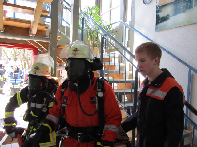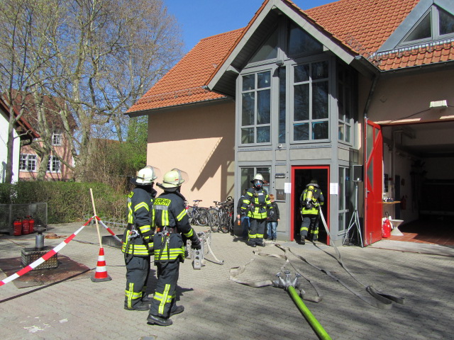 Abgerundet wurden die praktischen Übungen durch Vorführungen mit dem Rauchhausmodell der Brandschutzerziehung Karlsruhe, an dem die Rauchausbreitung in Gebäuden und die Funktionsweise von Rauchmeldern erklärt wurden.