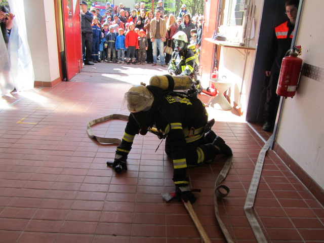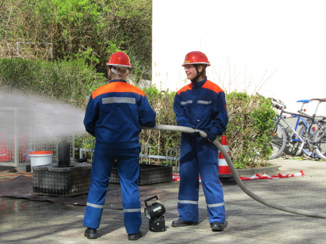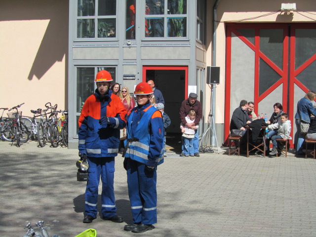Ein sicher besonderes Highlight waren die zwei Übungen der Jugendfeuerwehr. In der ersten Übung konnten die jüngeren aus der Jugendabteilung zeigen, was sie innerhalb eines Jahres in der Jugendfeuerwehr gelernt hatten. Dieser Teil der Jugendgruppe bestand nämlich aus Jugendlichen, die erst im letzten Jahr nach dem Tag der offenen Tür zur Jugendfeuerwehr gestoßen sind. In der zweiten Jugendübung zeigten dann die älteren Jugendlichen ihr können. Außerdem hatten die Jugendlichen einen Stand vorbereitet an dem sie die Jugendarbeit des letzten Jahres mit vielen Bildern präsentierten und den anwesenden Jugendlichen und Eltern bereitwillig alles erklärten.