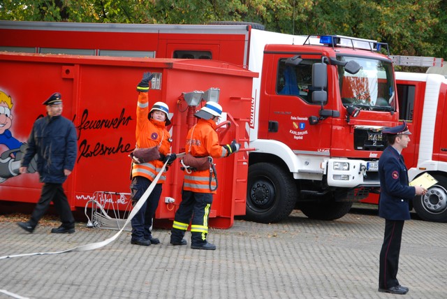 Am Samstag den 13.10.2012 nahm die Feuerwehr Karlsruhe am Gerätehaus der Freiwilligen Feuerwehr Hagsfeld die Leistungsabzeichen in Gold, Silber und Bronze ab. Mit dabei war eine gemischte Gruppe aus den Feuerwehren aus Karlsruhe Aue, Bulach und Rüppurr.