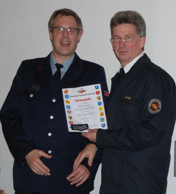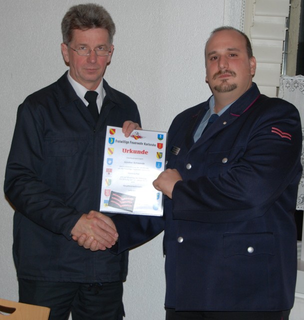 Nach dem Bericht des Abteilungskommandanten über das arbeitsreiche vergangene Jahr berichtete Karl Zimmer über die Ereignisse des vergangenen Jahres aus Sicht der Branddirektion und überbrachte Grüße vom neuen Amtsleiter Günther Bechtold sowie vom ehemaligen Amtsleiter Dr. Goertz. Anschließend dankte er der Abteilung Aue für die gute und harmonische Zusammenarbeit im Jahr 2012.
