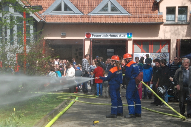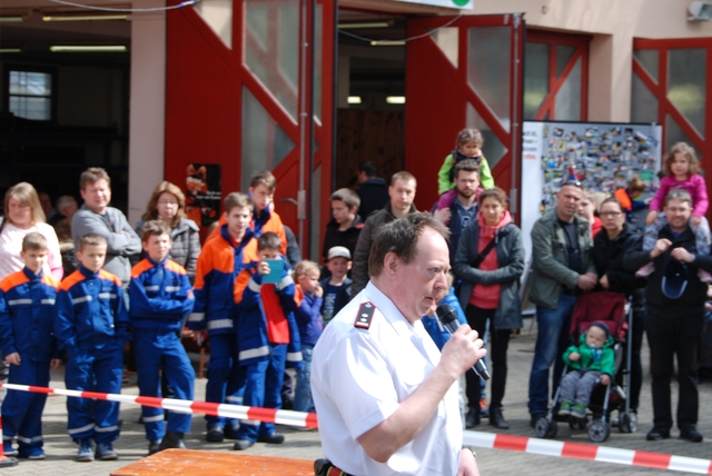 Beim Fettbrand und dem Spraydosen-Zerknall konnte man miterleben, welche Gefahren in der Küche lauern können. Die Einsatzabteilung gab bei mehreren vorgeführten Übungen einen Überblick über verschiedene Einsatz-Szenarien. Auch die Jugendfeuerwehr führte mit viel Engagement einen Löschangriff vor und zeigte ihren guten Ausbildungsstand. Anschließend wurde 8 Jugendlichen von ihren Ausbildern die Jugendflamme übergeben. Die Jugendflamme ist ein Ausbildungsnachweis in Form eines Abzeichens.