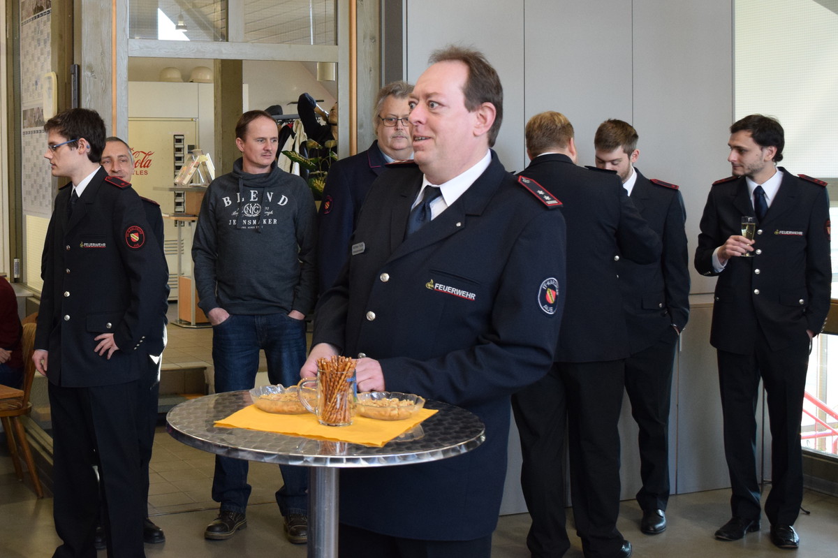 Am 6. Januar 2017 lud die Freiwillige Feuerwehr Karlsruhe, Abteilung Aue zu ihrem Neujahrsempfang im Feuerwehrgerätehaus. Abteilungskommandant Matthias Fuchs begrüßte die im neuen Jahr zahlreich anwesenden Mitglieder der Abteilung, Spender sowie Vertreter des Ortschaftsrates Durlach und Vertreter anderer Vereine in Aue. Außerdem bedankte er sich bei allen Mitgliedern für die geleistete Arbeit. Im Anschluss wurden langjährige Mitglieder der Abteilung für ihre geleistete Arbeit geehrt.