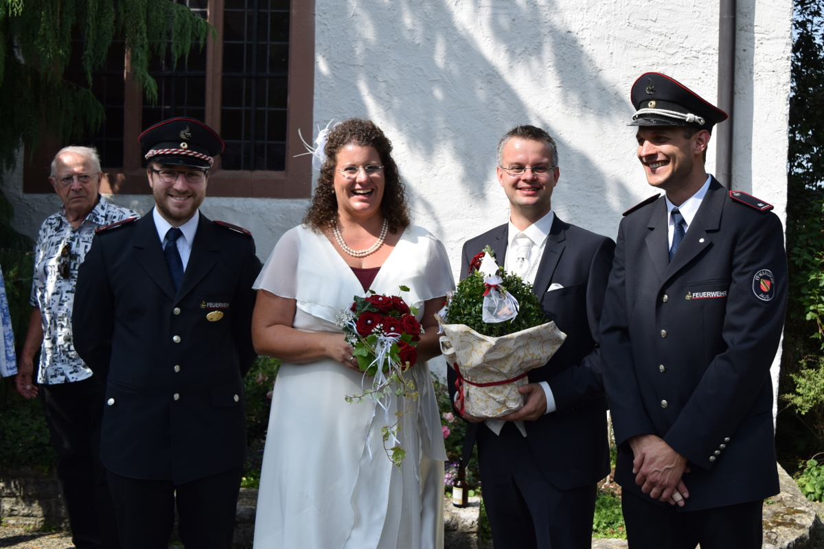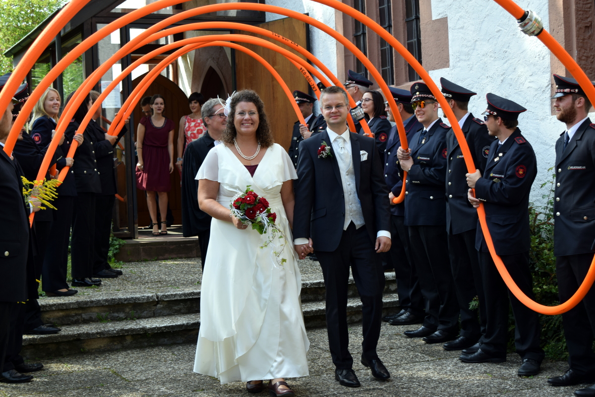 Unser früherer aktiver Kamerad Tobias hat in Kieselbronn seine Nicole geheiratet. Selbstverständlich waren wir bei seiner kirchlichen Trauung dabei und standen zusammen mit seinen Feuerwehrkameraden aus Kieselbronn Spalier. Wir wünschen ihm und seiner Frau für die Zukunft viel Glück und alles erdenklich Gute.