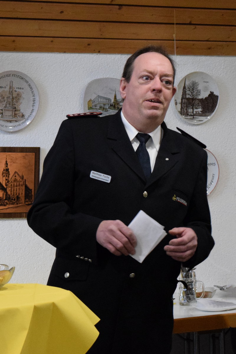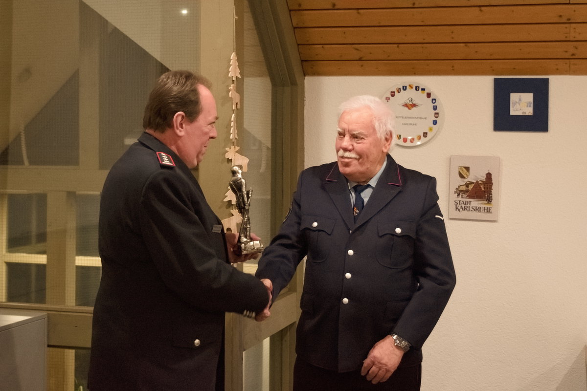 Zwei Wochen später, am 19. Januar fand die 114. Jahreshauptversammlung statt. Erneut konnten zahlreiche Mitglieder der Einsatzmannschaft und der Alters- und Reservemannschaft, sowie Ronald Richter von der Branddirektion Karlsruhe und Helmut Gerber vom Stadtfeuerwehrverband Karlsruhe begrüßt werden.