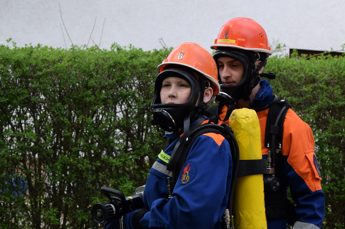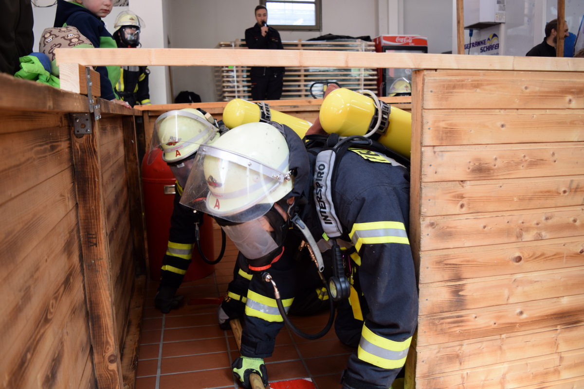 Unserer Besucher konnten sich vom Ausbildungsstand unserer Jugendfeuerwehr bei einer Übung überzeugen. Ebenso wurde eindrucksvoll gezeigt, wie zwei Trupps unter Atemschutz eine "Person" aus einer verrauchten Wohnung bergen und den Zimmerbrand löschen.