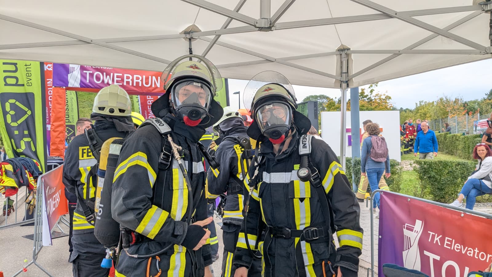 Vier unserer Kamerad:innen stellten sich der Herausforderung, mit angeschlossenem Pressluftatmer 1.390 Stufen und 232 Höhenmeter zu bezwingen.