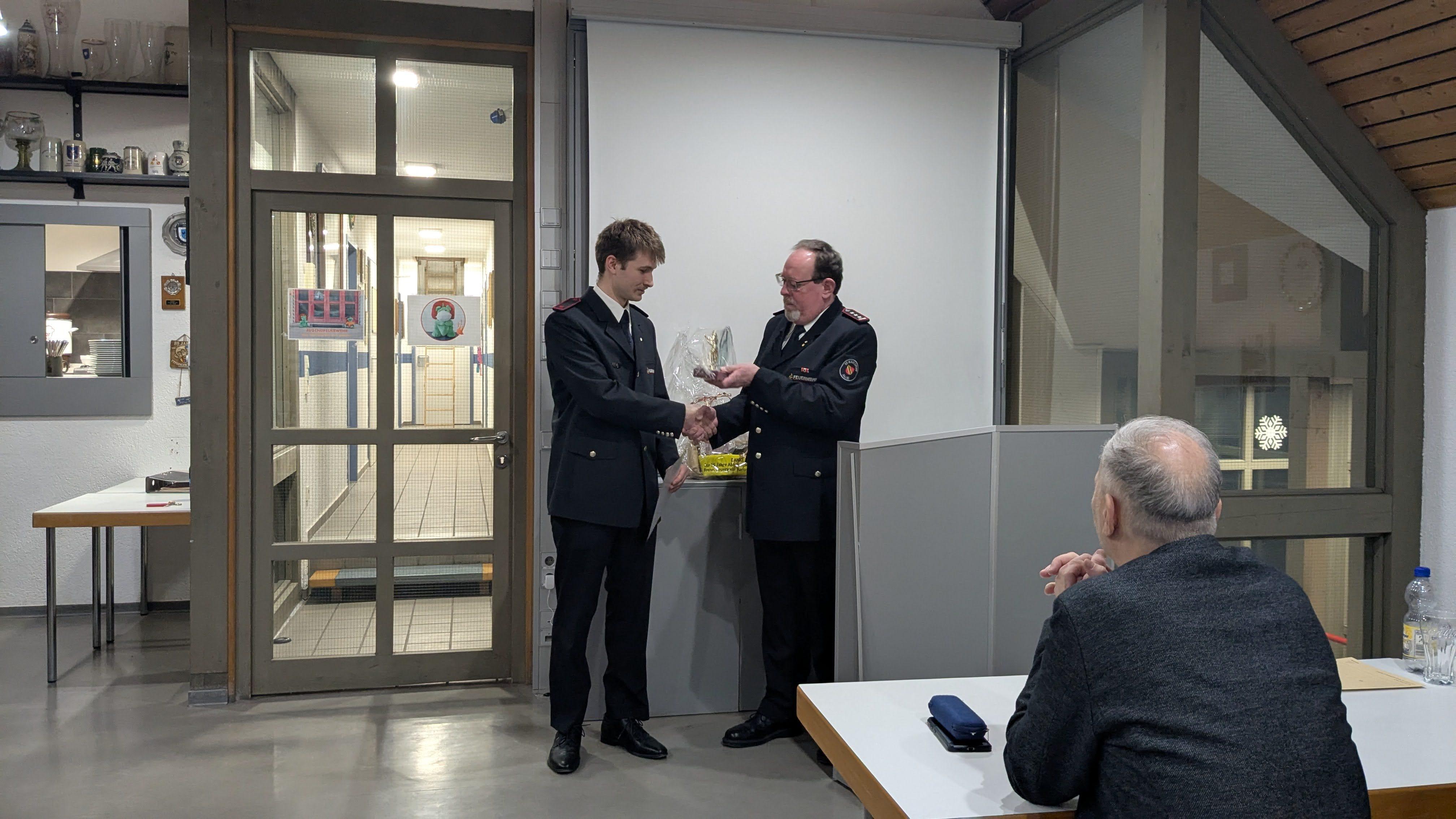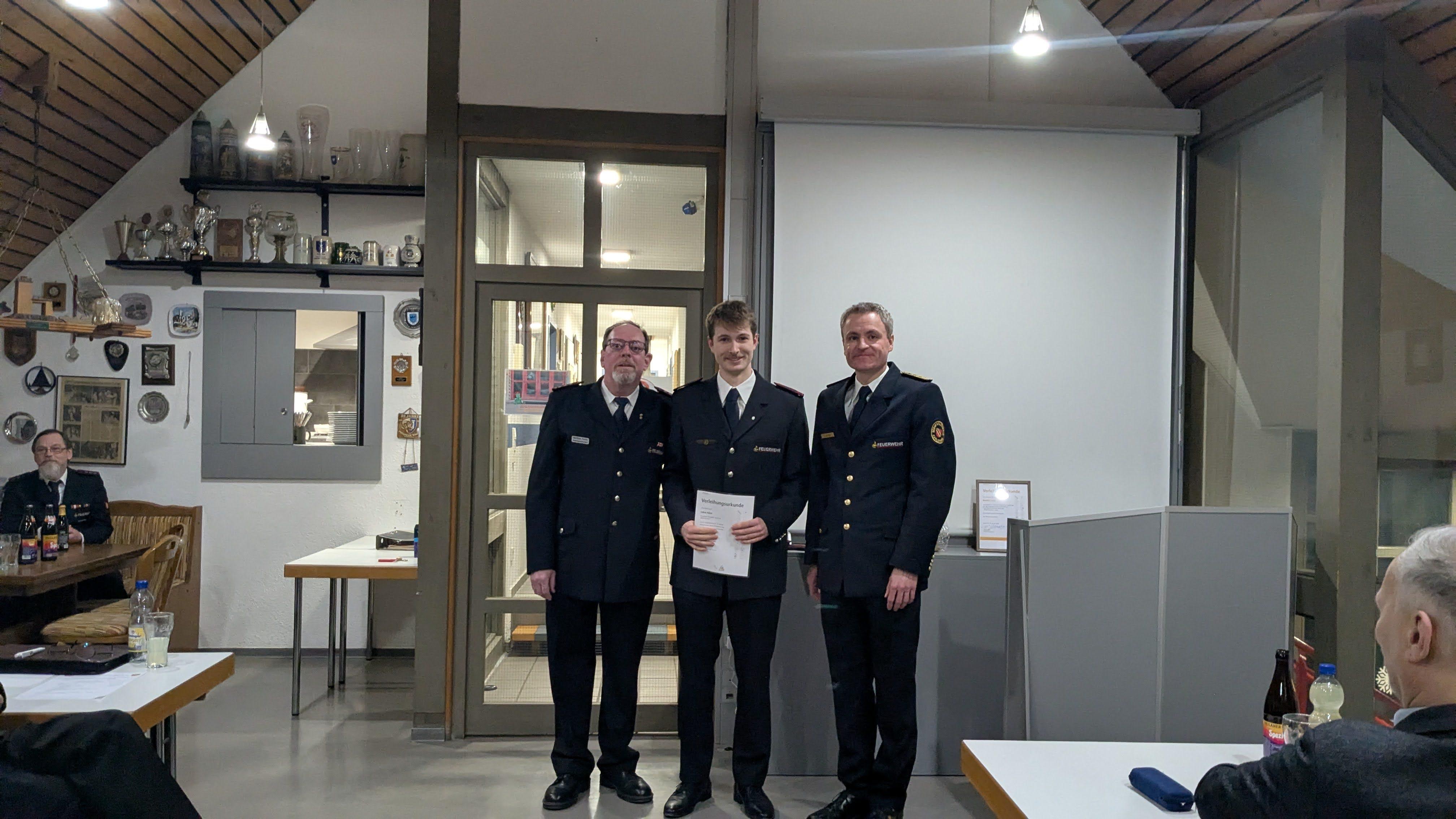 Bild 6: Julius Mörgenthaler wurde vom Feuerwehranwärter zum Feuerwehrmann befördert.