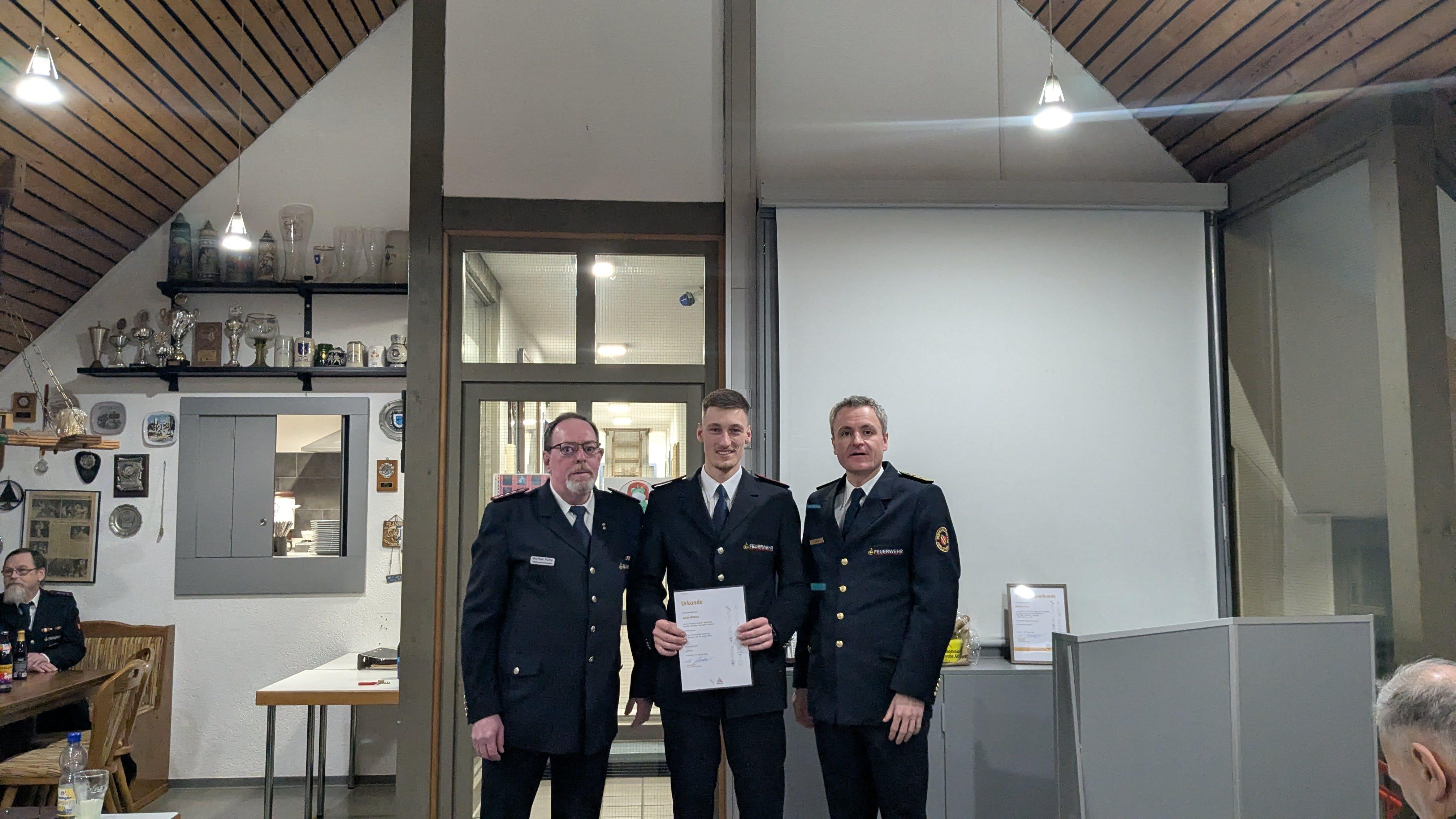 Bild 7: Justin Mildner wurde ebenfalls vom Feuerwehranwärter zum Feuerwehrmann befördert.
