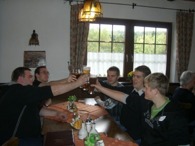 Am 17.10.2009 wurde der traditionelle Ausflug mit der ganzen Familie durchgeführt. Am Nachmittag ging es mit Bahn und Bus zum Thomashof. Eine kleine Wanderung durch den bunt gefärbten Blätterwald führte uns zum Naturfreundehaus Kleinsteinbach. Ein kleiner Regenschauer bei der Wanderung tat der guten Stimmung keinen Abbruch. Nach ein paar lustigen Stunden mit gutem Essen und Trinken ging es zum Bahnhof Kleinsteinbach und mit der KVV zurück nach Aue.