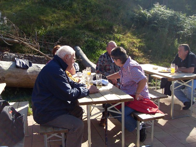 Vom Bahnhof aus machten wir eine kleine Wanderung zum Stöckerkopf (780 m) zur Glasmännlehütte.Da doch etliche Höhenmeter zu überwinden waren, kamen wir hungrig und durstig bei der rustikalen Blockhütte an. Bei wunderbarem Spätsommerwetter hatten wir von der Terrasse aus einen herrlichen Blick ins Baiersbronner Tal. Gegen Abend konnte man, je nach Lust und Laune, entweder zu Fuß oder mit dem Lift zurückkehren zum Bahnhof. Auf der Heimfahrt waren sich alle einig: Das war mal wieder ein schöner Ausflug!