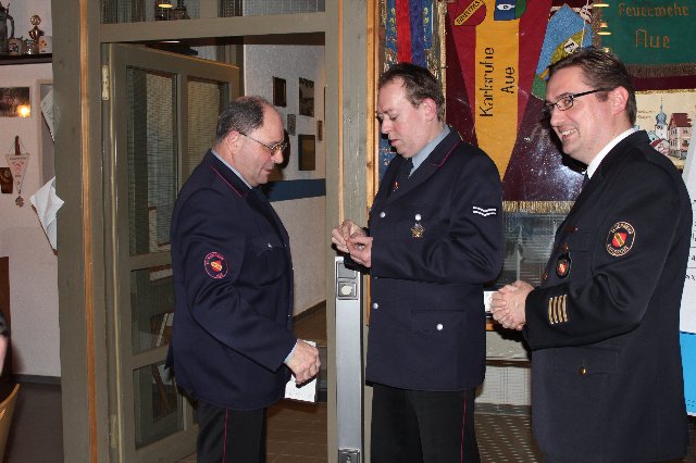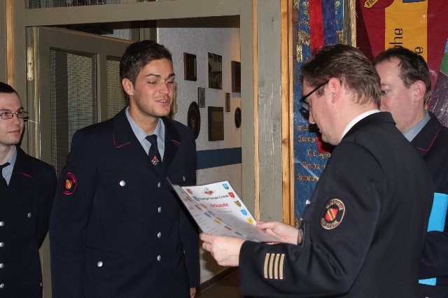 Nach verschiedenen Beförderungen und Ernennungen wurden folgende Kameraden für langjährige treue Mitgliedschaft bei der Feuerwehr geehrt: Mit der silbernen Ehrennadel für 15 jährige Zugehörigkeit M. Schwende, mit der goldenen Ehrennadel für 30 Jahre A. Ruppel und E. Stoll. Für 40 Jahre K. Erb, D. Ottaviano und R. Schmidt. Vielen Dank an alle Kameraden, die unserer Wehr so viele Jahre unterstützen!