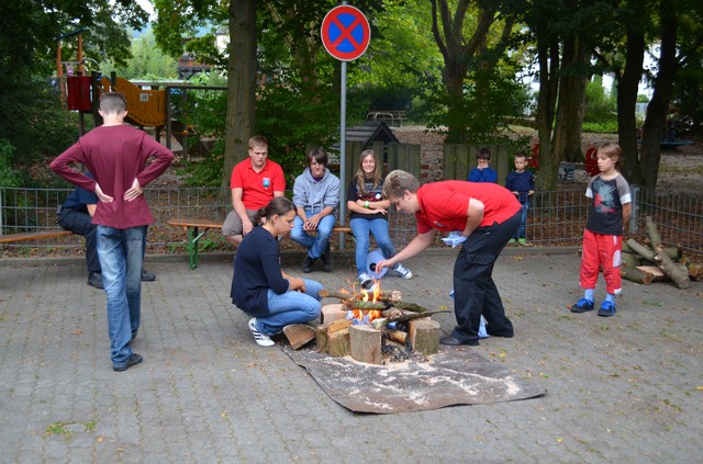 Als Unterstützung bekam unsere Abteilung das LF-KATS von Hagsfeld. Mehrere Jugendliche begannen inzwischen ein Lagerfeuer zu machen. Vor lauter Aufregung wollten manche von den Betreuern wissen, wann denn endlich der erste Einsatz sei, jedoch gaben diese keine Infos.