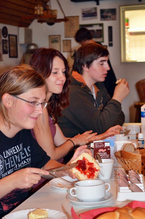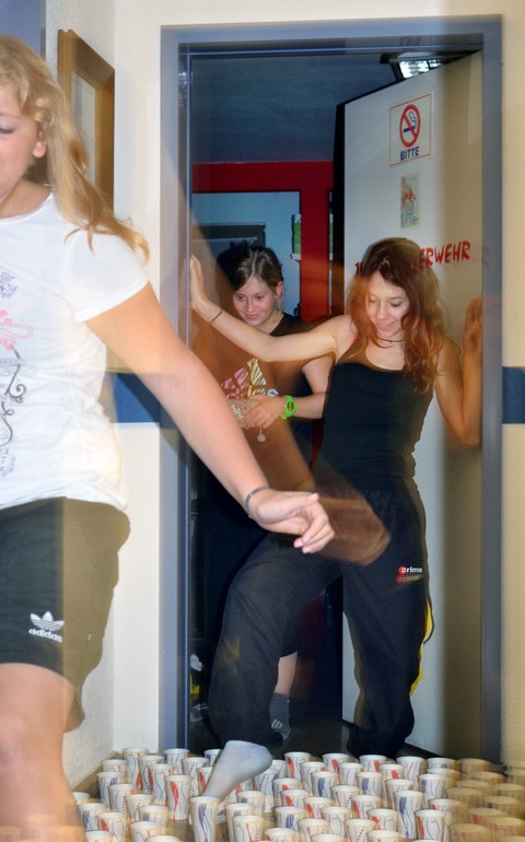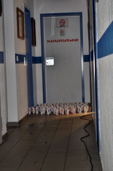 In der Nacht waren alle sehr aufgeregt und fanden deshalb kaum Schlaf. Kurz vor 5 Uhr morgens war der erwartete Alarm: ,, Kleinbrand im Oberwald‘‘. Als die Mädels sich jedoch bereit machen wollten, erlebten sie eine nasse Überraschung. Vor ihrer Tür standen Becher, die mit Wasser gefüllt waren. Als alle ausgerückt waren, wurde das Feuer mit einer Kübelspritze gelöscht. Nach diesem Einsatz konnte kaum noch einer schlafen. Schließlich gab es Frühstück. Über den Tag hinweg folgten noch ein paar Einsätze. Der Abschluss war bei der Baumschule.