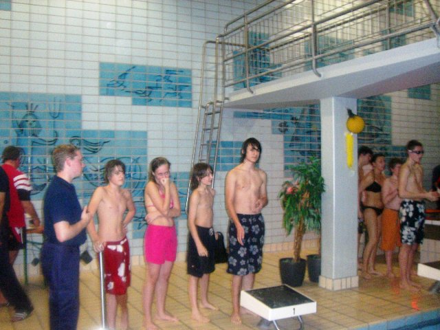 Unser erster Schwimmer konnte einen großen Vorsprung aufbauen, auch wenn er den Start ein wenig verpasst hat, holte er noch auf. Unser Zweiter schwamm, auch wenn er beim Training nicht richtig dabei war, ziemlich gut. Die dritte war am Anfang ziemlich langsam, aber sie schaffte es doch noch durchzuhalten bis zum Schluss. Unser letzter Schwimmer schwamm ziemlich schnell, doch schaffte er es nicht ganz die anderen einzuholen. Wir sind froh an diesem Wettkampf teilgenommen zu haben, auch wenn wir nicht gewonnen haben.